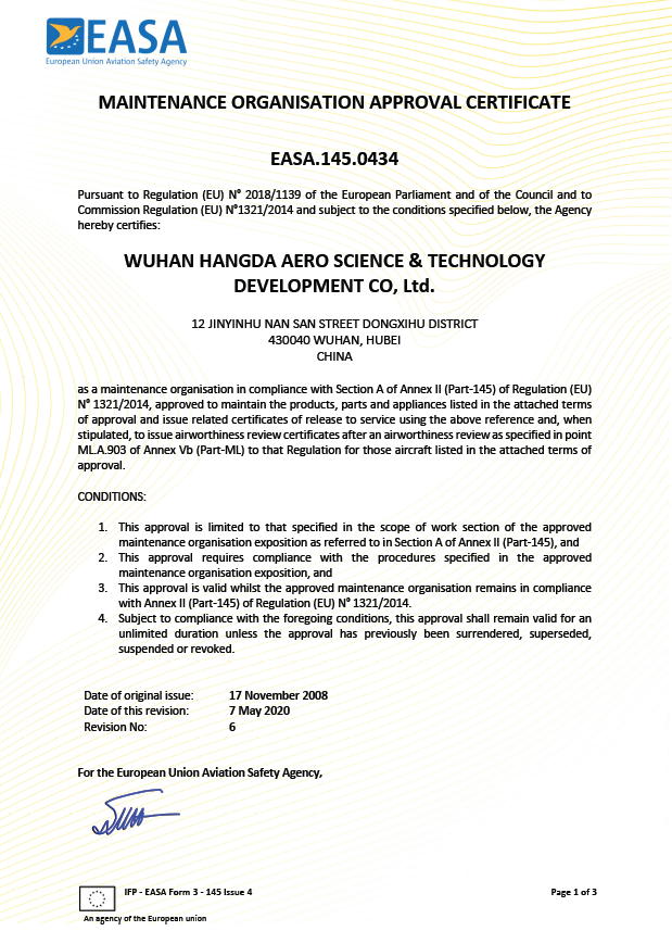 2021年1月15日武漢航達與Airbus簽署正式的維修服務協議,航達將為Airbus的FHS項目提供維修服務。Airbus FHS...